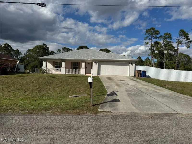 Welcome to your private oasis in the heart of Lehigh Acres, where luxury meets laid-back Florida living. This meticulously maintained residence offers 1,458 square feet of thoughtfully designed living space, featuring three generously proportioned bedrooms and two elegantly appointed bathrooms. Situated on a sprawling half-acre estate, this property offers an exceptional canvas for outdoor living and future possibilities. The expansive grounds, meticulously landscaped and fully fenced for privacy, create an impressive setting that sets this home apart in Lehigh Acres. The crowning jewel of this generous lot is the spectacular screened pool area, creating an enchanting retreat for year-round entertainment and relaxation. Imagine spending sun-drenched afternoons lounging poolside or hosting memorable gatherings in this private sanctuary. A welcoming front porch sets the stage for Southern charm, perfect for enjoying morning coffee or watching spectacular Florida sunsets. The strategic location places you minutes from the serene Lakeside Park, offering additional recreational opportunities for the whole family. East Lee County High School and convenient shopping at local markets are just a short drive away, combining the tranquility of suburban living with everyday conveniences. Inside, the primary bedroom serves as a peaceful haven, while two additional bedrooms provide versatile space for family members, guests, or a home office. The well-designed floor plan maximizes both functionality and comfort, creating seamless flow between living spaces. This property represents the perfect blend of indoor comfort and outdoor living, embodying the essence of the Florida lifestyle. Whether you're seeking a family home or a peaceful retreat, this residence offers an exceptional opportunity to embrace the best of Lehigh Acres living.