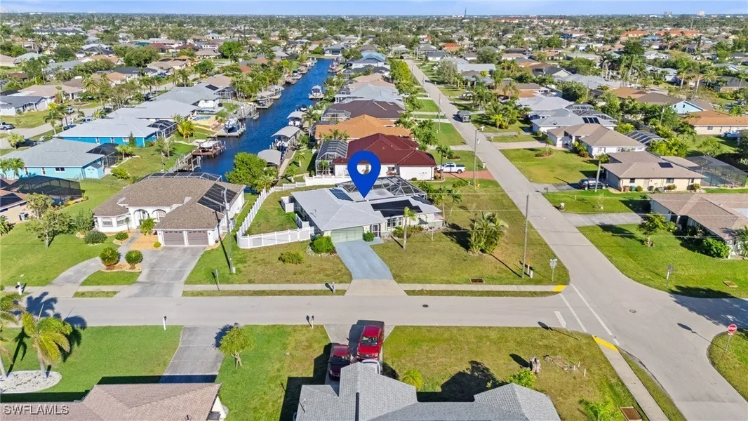 Looking for a great home in a prime Cape Coral location? This 3-bedroom, 2-bathroom home sits on an oversized lot along a gulf access canal, there's no dock or boating access-but you'll love the peaceful water views! NOT IN A FLOOD ZONE and has never had water intrusion. The big-ticket updates are already done! Enjoy lower electric bills with fully paid-off solar panels (under warranty), a newer roof (2023), hurricane-rated triple-pane windows, and foam attic insulation for extra energy efficiency. The electric panel is wired for a whole-home generator (which stays with the house) and the house has been re-piped and wired for quantum fiber internet -great for peace of mind. The garage has its own AC unit (newly installed), making it a great spot for a workshop, exercise room, or just a comfortable space for laundry. Inside, the kitchen features granite countertops and newer appliances. The primary bathroom was upgraded with a Jacuzzi whirlpool tub/shower for ultimate relaxation. All three bedrooms have beautiful wood floors and large closets, while the living room is wired for surround sound - great for movie nights! Step outside to a beautiful saltwater pool, which was resurfaced ~2 years ago, along with a large paver pool deck, creating a great entertaining space. The backyard is fully fenced (6-ft with reinforcements) and has a 12-ft wide gate, perfect for boat storage. Fantastic location! Close to schools, parks, shopping, and dining. If you're looking for a home with solid updates and room to make it your own, this is it! Don't miss out-schedule your showing today!