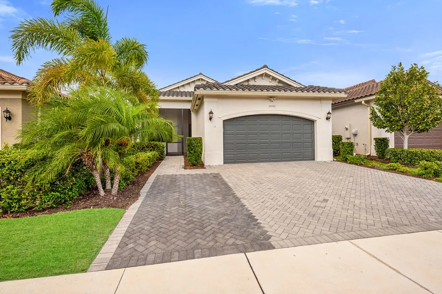 Lowest priced single-family home in Marina Bay! Have you been searching for a move-in-ready, upgraded home in one of Fort Myers desirable gated communities? This beautifully maintained residence in Marina Bay features the popular Cayman floor plan, built in 2020, with thoughtful enhancements throughout. From the widened brick paver driveway and tile roof to manual storm shutters, this home offers privacy, style and modern comfort all in one. Inside, the open layout boasts tile flooring in the main living areas, crown molding and elegant finishes. The kitchen is functional and sophisticated, featuring 42-inch white cabinetry with soft-close drawers and custom pullouts, under-cabinet lighting, quartz countertops, a tile backsplash and a spacious breakfast bar. GE stainless steel appliances complement the space, while recessed lighting and a formal dining area with a modern chandelier make it ideal for entertaining. The living room opens through glass sliders to a screened lanai with a ceiling fan and lush tropical garden views, your private oasis. The owner's suite is a serene retreat with a bay window, tray ceiling and two walk-in closets with shelving. The en-suite bath offers dual vanities with a makeup counter, a soaking tub, a frameless glass walk-in shower and a linen closet. Two guest bedrooms share a full bath with a shower-tub combo, and a versatile den with double-door entry is ideal as a home office or guest room. The laundry room includes overhead cabinetry, a utility sink, and GE washer and dryer, while the two-car garage is as functional as it is spacious. Marina Bay, built by GL Homes, offers resort-style living with a 12,000-plus-square-foot clubhouse, resort and lap pools, fitness center, aerobics studio, indoor sports court, tennis and pickleball courts, volleyball, a party pavilion and more. Conveniently off Treeline Avenue in the Daniels corridor, you'll enjoy quick access to Interstate 75, SWFL International Airport, Gulf Coast Town Center, FGCU, Miromar Outlets, and some of the area's top dining and beaches. Don't miss your opportunity and schedule your private showing today.