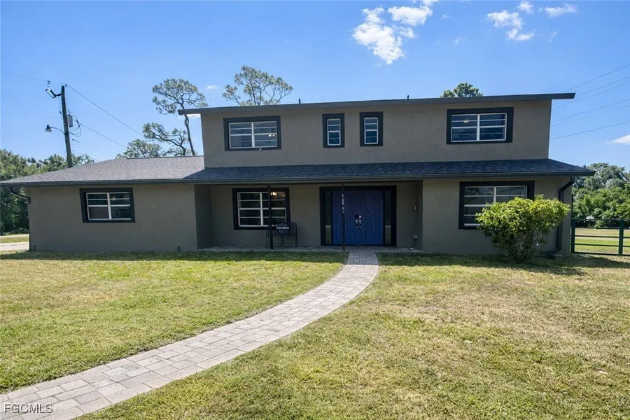 New Price Improvement! Rare opportunity in North Fort Myers--this private residence sits on over one acre with NO HOA and AG-2 zoning, offering space, flexibility, and privacy rarely found. Welcome to this fully upgraded, move-in ready 5 bedroom, 2.5 bath home designed for both comfort and freedom. Enjoy room for boats, RVs, workshops, or future expansion--ideal for those seeking space without restrictions, all while being conveniently located near major roadways, shopping, and dining. Step inside to discover stunning new wood plank tile flooring with modern tile baseboards throughout the first floor, complemented by fresh interior paint that brightens every room. The kitchen is a standout feature, boasting brand-new shaker cabinetry, all new stainless steel appliances, and a layout perfect for entertaining. Upstairs, luxury Pergo vinyl flooring spans most of the second level, adding durability and elegance, with only one bedroom and primary bath retaining original wood for contrast and warmth. Enjoy the piece of mind that comes with big ticket improvements like a new 2024 shingle roof with new soffit, fascia, and gutters, a new water heater, elevated outdoor A/C units, and a downstairs bath complete remodel. Additional highlights include a monitored ADT security system, upgraded baseboards throughout, central vac system, and a newly installed (2025) water jet pump for peace of mind with the home's well system. Don't miss your chance to own this thoughtfully updated home with major system upgrades already complete. Schedule your private showing today and discover the comfort and value this home encompasses. Seller open to reasonable offers!
