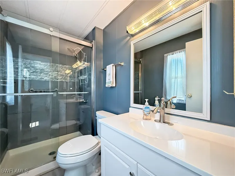 This stunning 2-bedroom, 2-bathroom home Spanning over 1,000 square feet and located in the highly sought-after Phase 2 Section of Tamiami Village. Situated away from the main road, the home offers a peaceful environment with low traffic, making it an ideal retreat. Residents are conveniently located halfway between the Galaxy Pool and the Friendship Pool and Hall. The property features an extended concrete walkway leading to a ramp at the rear of the home for easy access. Inside, residents will appreciate the convenience of a Samsung stack washer and dryer in the Main Bedroom, Reverse Osmosis Water System, updated electric panel, Granite Counter tops, Newer Windows, a Sleep Number Bed valued at $6,000, a new outside electrical box costing $4,500, Stainless Steel Appliances. The Master Bath with a walk-in shower, and a Guest Bathroom with a tub and shower gives you that SPA Like Feeling. The home also boasts a spacious screen room that provides additional entertaining space for guests or a relaxing retreat. An attached shed with a sink, workbench, and extra storage with the convenience of a door leading to the rear of the property. Additionally, a spacious screen room provides access to the front of the home and carport. Tamiami Village is a vibrant 55+ pet-friendly community offering an array of amenities, including three heated swimming pools, a spa, shuffleboard courts, horseshoes, billiard rooms, two clubhouses, a fitness center, and a library. Conveniently located near dining, shopping, golf courses, and beaches, this community offers the perfect blend of relaxation and recreation. With a low monthly maintenance fee of $284.77, residents have access to all amenities, WiFi in the clubhouse, and trash removal services. This home is being sold partially furnished for buyers. Don't miss the opportunity to own this beautifully updated home in a desirable location.