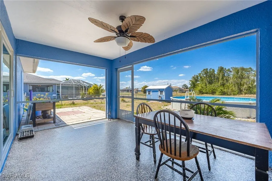 Welcome to your own private retreat in the heart of Fort Myers! This beautifully maintained 3-bedroom, 2-bathroom open concept home is the perfect blend of modern comfort and Florida charm. Nestled on just under a third of an acre, the property provides ample space, a sense of privacy, and an unbeatable location. From the moment you arrive, you'll notice the care and pride of ownership throughout-from the sparkling clean interiors to the thoughtfully designed outdoor spaces. Step inside and enjoy the bright, open floor plan that flows seamlessly from the living area to the kitchen and dining space, ideal for both entertaining and everyday living. The spacious layout is perfect for families or anyone who values a light-filled, functional home. Outside, the fully fenced yard provides peace of mind for pets or children, while the large lanai provides a shaded space to relax or host gatherings year-round. One of the standout features is the peaceful canal that runs behind the property, providing natural beauty, privacy, and a sense of tranquility with no rear neighbors. The above-ground pool, installed in 2022, adds the perfect touch for cooling off on hot Florida afternoons, and the epoxy-coated garage provides a clean, durable space for storage, hobbies, or parking. Additional peace of mind comes with a new roof installed in 2021 and no damage from Hurricanes Ian, Milton, or Helene. The home is also not located in a flood zone and comes with no CDD fees, saving you money while providing long-term security. Conveniently located just off SR-82, this home puts you close to shopping, dining, schools, and everything Fort Myers has to provide. The area is undergoing rapid growth with tons of new construction and commercial development already underway, making this an ideal time to buy before property values rise. Whether you're looking for your forever home or a smart investment in one of Southwest Florida's fastest-growing areas, this property checks all the boxes. Don't miss the chance to make this peaceful, move-in ready home your own. Schedule your showing today and discover everything this Fort Myers gem has to showcase!