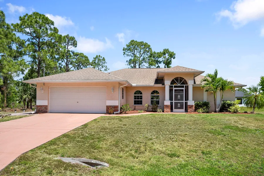 3% to buyers closing cost with full price offer! Half acre of Florida living at its finest! This impressive three-bedroom, two-bath residence spans over 1,600 square feet of thoughtfully designed living space, offering a blend of sophistication and comfort. Go inside and feel immediately at home, where natural light dances across well-appointed interiors. The heart of the home is the gourmet kitchen, featuring gleaming stainless steel appliances and elegant granite countertops — a dream for any culinary enthusiast. The primary suite offers a private retreat with an en-suite bath, while two additional bedrooms provide plenty of space for family or guests. Additional standout features include a state-of-the-art reverse osmosis system ensuring the purest water quality, a tiled and screened lanai for indoor-outdoor living, and a storage shed for extra organization. Built with strength and quality, this home suffered no damage from recent hurricanes, according to the owner, a testament to its solid construction. A freshly painted two-car garage and convenient in-home laundry facilities add to the everyday ease of living here. In a peaceful, established neighborhood with no HOA fees and a low tax bill, this property is close to Lehigh Regional Medical Center, popular shopping, dining and more. Ideal for first-time buyers, investors, retirees or anyone looking to settle into a quiet, spacious and welcoming community. Schedule your showing today and discover how this beautiful Lehigh Acres property can become your new home.