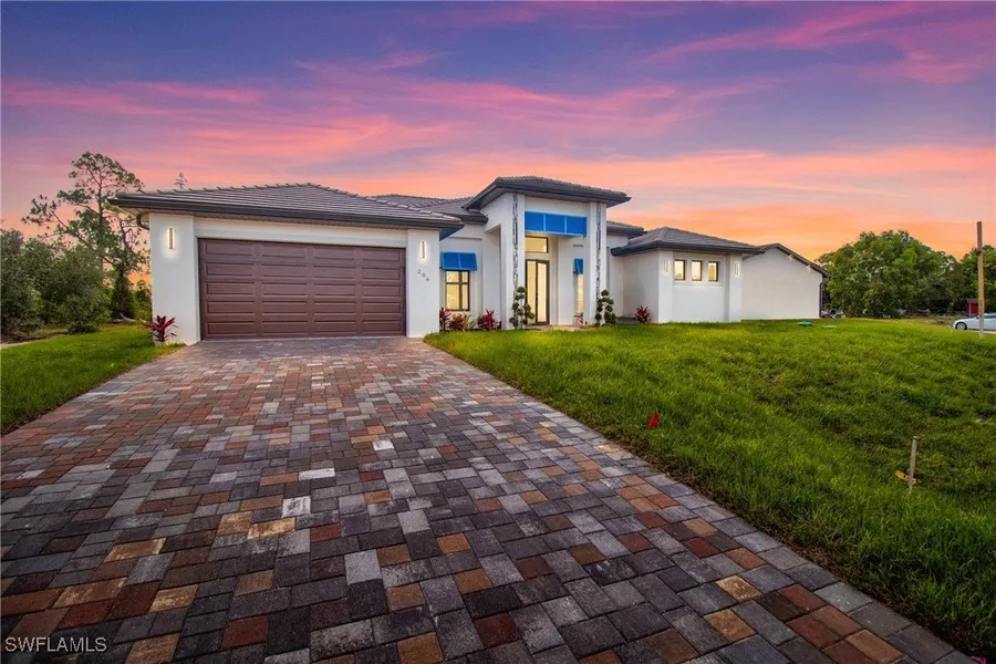 Modern Elegance with a Colonial Touch! Welcome to your dream home in Lehigh Acres! This brand-new construction makes a bold first impression with its grand entryway, tile roof, and symmetrical architecture accented by colonial-style columns. The deep-toned garage, double French doors, and chic blue awnings add a pop of character and style making it feel coastal and yet modern. Step into elegance with this stunning 3-bedroom + office, 2-bath home offering over 2,000 sq. ft. of living space! Located in one of the most desirable zip codes in Lehigh Acres, this home boasts high-end features and thoughtful design throughout. Features You'll Love! Luxury granite countertops & light-up kitchen cabinets. Formal dining room perfect for entertaining. Porcelain tile flooring throughout - sleek and durable. French doors leading into a spacious office. Grand master bathroom with a true hotel-style vi...