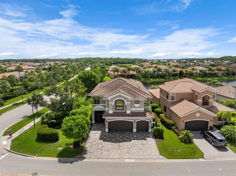 This stunning corner lot home in the sought-after Marina Bay community offers 4,190 sq ft of luxurious living space with 6 bedrooms and 6 bathrooms. Built in 2018, it features a contemporary open floor plan, a gourmet kitchen with high-end appliances, and expansive living areas perfect for entertaining, accordion hurricane shutters for your protection as you enjoy the serene lake views from the spacious lanai, ideal for Florida living. Additional highlights include a 3-car garage and proximity to top-rated schools, healthcare, pro baseball shopping, dining as well as, an exclusive lifestyle with the debut of its stunning 12,000 sq. ft. clubhouse and one-of-a-kind lifestyle center. This highly anticipated lifestyle center offers residents country club living without all the typical fees. Relax and unwind under a shaded cabana or alongside the outdoor fire pit or take a dip in the resort-style pool or a few laps in the lap pool, you name it...there is something for everyone. Looking to get in shape, take advantage of the fitness center and aerobics studio. Interested in joining neighbors for an afternoon card game or toting the kids to the splash pad and playground, Marina Bay has it all. Lighted tennis courts, pickleball courts and indoor and outdoor basketball court are some of the other amenities that can be found at Marina Bay Fort Myers. This property epitomizes luxury and convenience in Southwest Florida.