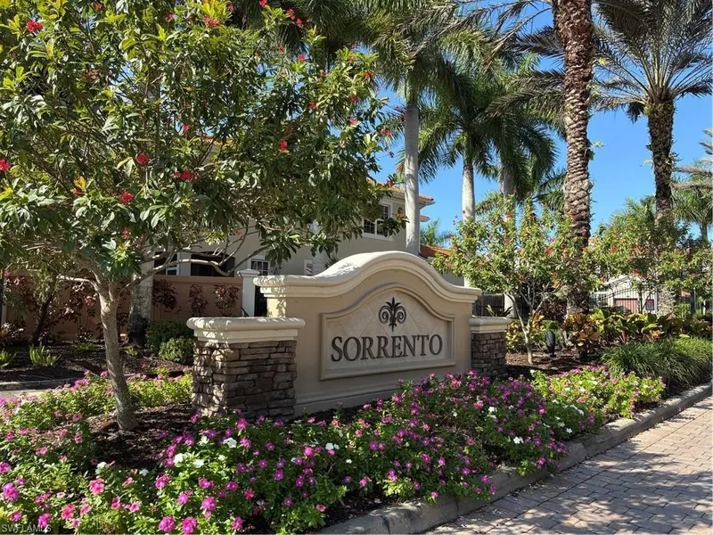 NEW HVAC November 2024! Value-added upgrades—Both bedrooms updated with CoreTec, luxury wide-plank flooring. Custom Bali Vertical Fabric Panels on slider door offers morning filtered light and privacy when needed. All lighting has been updated for a more contemporary ambient feel; interior freshly painted throughout in April 2023, exterior April 2025. All windows are custom-fitted with privacy wood blinds. This bright and spacious first-floor condo is flooded with natural sunlight and offers an ideal layout for both comfort and functionality. Featuring 2 bedrooms, a versatile den, and an open-concept design, this home is perfect for full-time living or a seasonal retreat. The kitchen is thoughtfully designed with stainless steel appliances, solid stone countertops, 42” cherry cabinets, a charming eat-in area, and convenient island, that flows seamlessly into the expansive great room with 10' ceilings and crown moulding—a welcoming space for entertaining and everyday living. The primary suite is generously sized, featuring a walk-in closet and en-suite bath complete with dual sinks and a walk-in shower. The second bedroom, located on the opposite side of the home, offers added privacy for guests or family. Second bath is wheelchair accessible. The den is the perfect spot for a home office, reading nook, or an extra bedroom. The backyard lanai view with no rear houses, offers privacy and tranquility—first floor living offers excellent convenience for pets with seamless indoor-outdoor flow and direct access to the outdoors. This is a pet-friendly community. Residents of Sorrento enjoy resort-style amenities, including a sparkling, palm tree-lined pool with waterfall, a clubhouse, fitness center, and bocce courts. Noteworthy—quarterly fees offer more amenities compared to other communities in the area—includes water, sewer, trash, internet/cable, landscape/exterior maintenance. If so inclined, monthly get-togethers and pool gatherings are a great way to get to know your neighbors. This friendly community is located off a quieter section of Bonita Beach Road surrounded by natural preserves and walking trails to explore. Conveniently located near I-75 and just a short drive straight to the beaches, shopping, and dining, this home offers the best of SWFL living. Don’t miss your opportunity to own this beautiful, move-in ready condo!