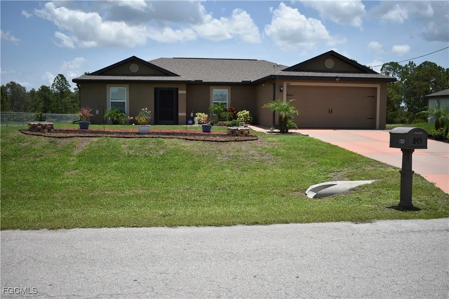 Beautiful Ranch-Style Home on Oversized Lot with Preserve Views Built in December 2020. This thoughtfully designed single-family ranch-style home combines modern comfort with tasteful upgrades. Featuring an open-concept layout, custom interior paint, and stylish window treatments, this home offers a warm and inviting atmosphere throughout. The spacious kitchen seamlessly flows into the dining and living areas and is perfect for entertaining. Enjoy granite countertops, a large central island, stainless steel appliances-including a new refrigerator-and generous cabinet space. Premier wood laminate flooring extends throughout the home, offering durability and elegance in every room. Each bedroom boasts ample closet and storage space. The home is equipped with central heating and air conditioning, impact-resistant windows, smoke detectors, a new washer, dryer, and hurricane shutter panels for added peace of mind. Security features include ADT monitoring and solar- and battery-powered cameras. The two-car garage includes thermal barrier insulation on both the ceiling and garage door panels, helping to maintain comfortable temperatures year-round. Outside, the oversized lot is beautifully landscaped in both the front and back yards. The front yard features an irrigation system, while the expanded 10' x 10' back patio and partially fenced yard provide a great space for relaxation or outdoor gatherings. There's ample room to install a swimming pool, with serene views of a dedicated County Preserve offering privacy and natural beauty. Constructed with durable block and stucco over a concrete foundation, the home also features a septic system and a 25-year shingle roof warranty. Located in a quiet, non-gated community with no HOA, you'll enjoy the freedom to personalize your property without restrictions. Don't miss the opportunity to own this move-in-ready gem in a peaceful setting-schedule your private showing today!