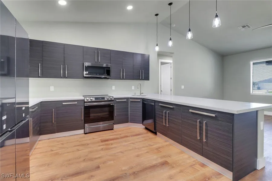 SELLER IS MOTIVATED! This is truly a must-see in-person property. This absolutely stunning single-family home features 3 bedrooms, 2 bathrooms, and a spacious 2-car garage. Step inside and experience luxury living with beautiful luxury vinyl floors throughout, impact windows and doors, stainless steel appliances, and custom finishes that make this home truly one of a kind. The huge kitchen is a chef's dream, showcasing high-end appliances, quartz countertops, and plenty of space for preparing meals or entertaining guests. Built in 2023 and never lived in, this home is READY TO MOVE IN!!!!!! Located on CITY WATER, it offers modern comfort, convenience, and peace of mind. Whether you're relaxing in the spacious living room, enjoying dinner in the dining area, or unwinding in one of the three bedrooms, you'll feel right at home in this luxurious space. Don't miss out on this opportunity to own a beautiful, brand-new home in a desirable Cape Coral location. Live the life of luxury - schedule your private showing today!