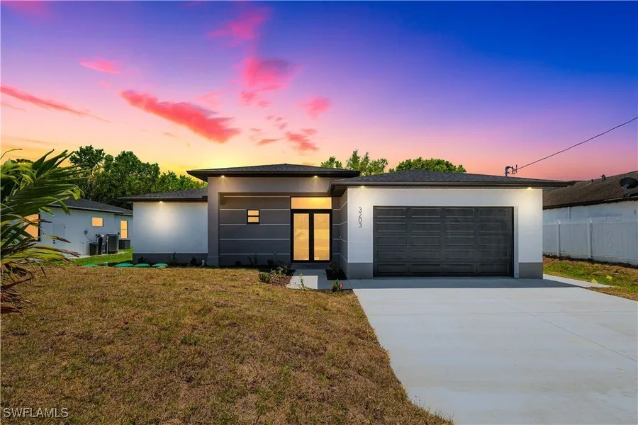 New construction custom home situated on an oversized 10,890 sq. ft. lot. This 3-bedroom plus den, 2.5-bath residence offers 1,720 sq. ft. of living area and 2,354 sq. ft. total, featuring a split floor plan with large sliding glass doors and 96-inch interior doors. Each bedroom includes a built-in desk or vanity. Spacious laundry room with sink and custom cabinetry. The home features granite countertops, tile flooring installed over Ditra underlayment, and fully waterproofed showers. Hurricane-impact windows and doors. Finished and insulated 2-car garage with window and service door. Oversized covered lanai with space for outdoor living, large backyard with room for a pool, and extended driveway with ample parking. Quality construction and modern finishes throughout. PID / STRAP: 23-44-26-06-00034.0080