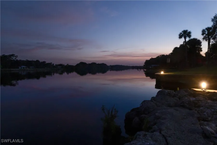 Not in a flood zone. Turnkey, resident-owned 55+ community situated along the Caloosahatchee waterway, providing convenient Gulf access. This 2-bedroom, 2-bath home features a Florida room and a spacious open floor plan. You'll also find a workshop/storage area complete with a washer and dryer, as well as a large carport. Oak Park Village is known for its active lifestyle and low monthly HOA fees of $301, which cover lawn care, water, sewer, access to the community building and park, swimming pool, exercise room, library, and marina. For added convenience, a community bus offers weekly trips to the grocery store and transportation for scheduled activities. The community allows one dog or cat under 25lbs. Extra storage is available for rent on a first-come, first-served basis only $20 per month, and a heliport is located on-site for emergencies. The community is also conveniently close to...