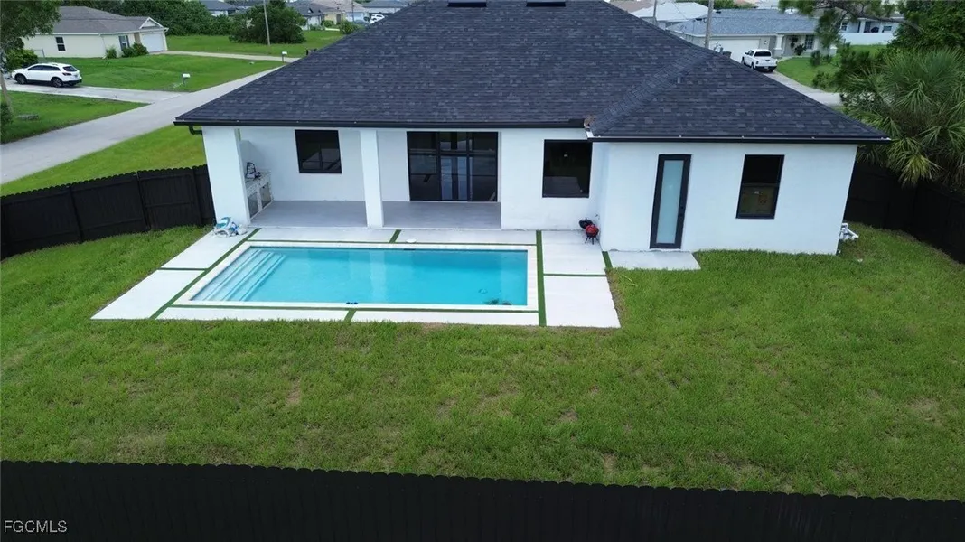 BRAND NEW POOL HOME WITH FENCE!! STUNNING NEW CONSTRUCTION 2024 back to the market TOTAL SQUARE FOOTAGE UNDER ROOF 2250 SQ FT. NO FLOOD ZONE. 4 Bedroom, 3 Bathroom, 2 Car Garage Home located in Cape Coral. It comes with IMPACT DOORS &WINDOWS which leads you into SPACIOUS OPEN FLOOR PLAN. Many upgrades like STAINLESS STEEL appliances, QUARTZ countertops, pendant/ recess lighting, pantry closets, and high premium faucets. MASTER BEDROOM with 2 walking closets, very spacious and comfortable. Garage with flake EPOXI FLOOR.