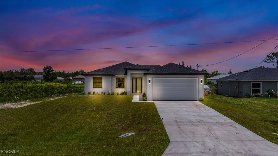Discover this stunning brand-new home designed with comfort, style, and everyday convenience in mind. Offering 3 bedrooms plus a versatile den, 2 bathrooms, and 1,596 sq ft of living space, this residence showcases a thoughtful layout with high-quality finishes throughout. Tall 9.4-ft ceilings paired with 8-ft interior doors create a bright, spacious atmosphere the moment you step inside. The open kitchen features a large island with quartz countertops, premium appliances, and a walk-in pantry-perfect for cooking and gathering. The owner's suite is a true retreat with dual walk-in closets and a spa-inspired bathroom. A split floor plan provides privacy for family or guests, while the oversized laundry room brings extra functionality to your daily routine. Ideally located near shopping, dining, schools, and just a short drive to Southwest Florida's beautiful beaches, this home delivers the best of Lehigh Acres living. Don't miss your chance to make 420 Yolanda St yours-schedule your private showing today!