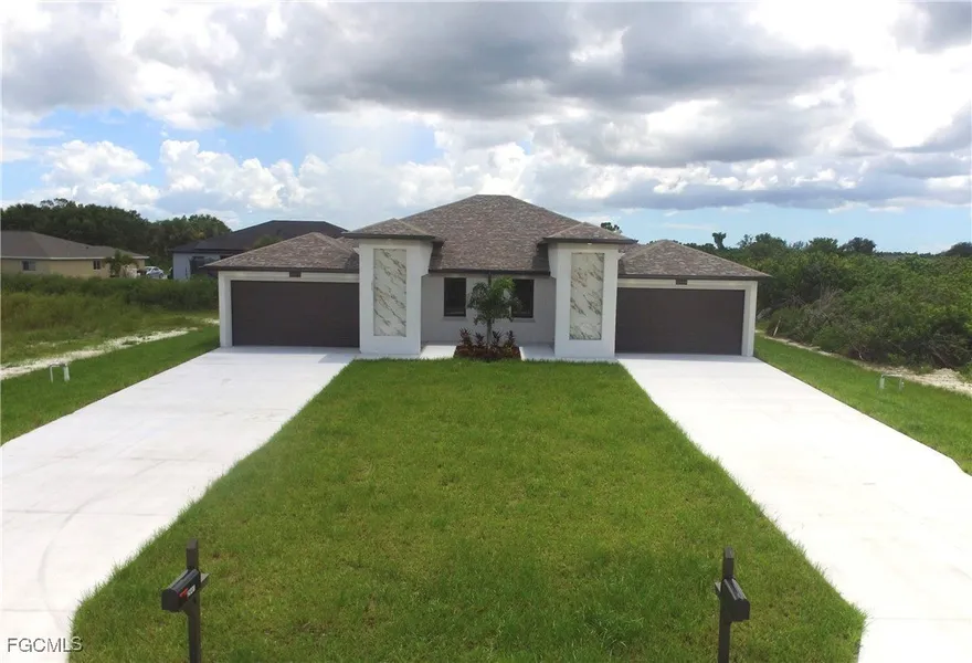BOTH SIDES RENTED OUT FOR A TOTAL OF $3,800 A MONTH UNTIL DECEMBER 2026!!! This high-end duplex offers luxury and functionality with tile flooring throughout, custom tile showers, and full stainless steel appliance sets. Each unit features a double car garage (rare for duplexes), black impact-resistant windows and sliding doors, dual master closets, and a stylish bar-style kitchen. This duplex also includes 2 oversized driveways that fit up to 6 cars per side. Includes full gutter and irrigation systems. Built by a reputable builder with attention to detail and quality for luxury. Come check out this beauty of a duplex before it's too late.