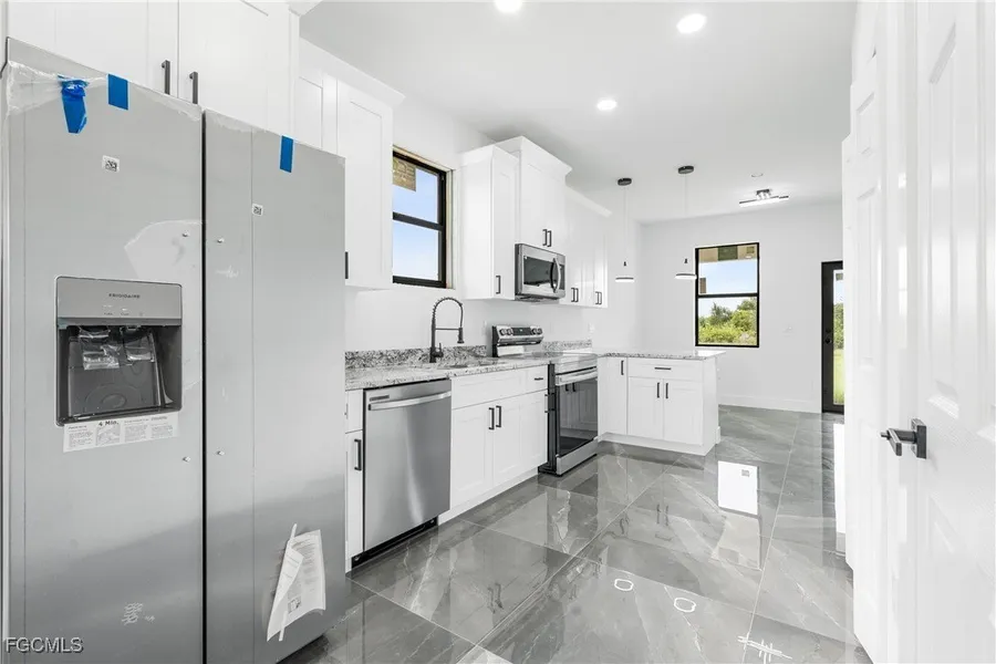 Welcome to your dream home in the heart of Lehigh Acres. New Home features a specious floor plan, Perfect for those looking for comfort and modern living, Three well-sized bedrooms and 2 full baths. You'll love the elegant tile flooring throughout the house, Complemented by Impact windows and doors that provide peace of mind. The Huge kitchen is a chef's delight, boasting granite countertops, soft-close cabinets and a top of the line Stainless steel appliance package, Enjoy the Florida lifestyle in your spacious lanay, perfect for relaxing or entertaining. Convenient garage with electric door opener. This property offers the perfect blend of style, comfort and practicality. Don't miss out on this fantastic opportunity!