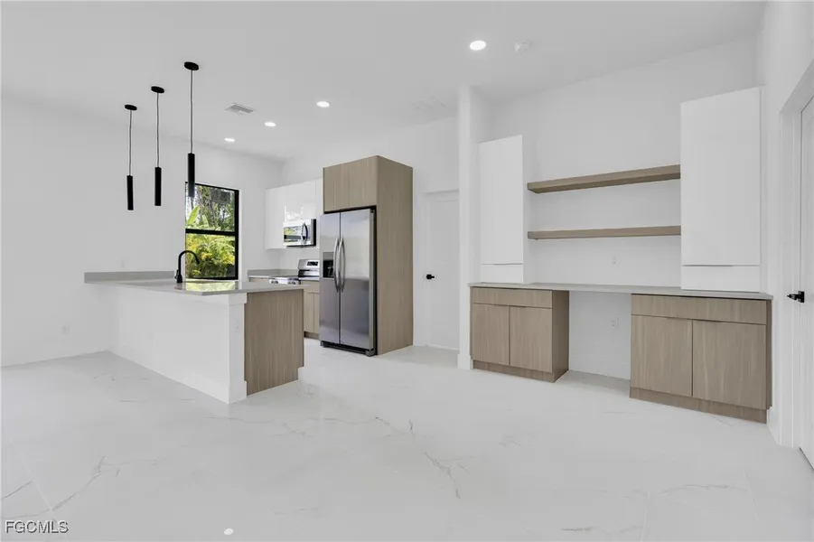 Beautiful New Construction in one of the Fastest-Growing counties in West Florida. Discover this stunning new build with a cozy, open floor plan and a grand, open layout with 10-foot ceilings throughout. Featuring 3 bedrooms, 2 full bathrooms, plus a versatile den perfect for an office, playroom, or guest room. Enjoy the convenience of an independent laundry room, a spacious 2-car garage, and a covered lanai for relaxing or entertaining. There's also ample space to add a pool, perfect for outdoor leisure and family fun. Designed in a modern farmhouse style, the exterior showcases shiplap-inspired stucco details. Inside, you'll find elegant Santorini porcelain tile throughout, with neutral tones accented by pops of black and natural wood for a timeless, sophisticated feel. Ideally located just 35 minutes from Downtown Fort Myers, 45 minutes from Downtown Cape Coral, and approximately 90 m...