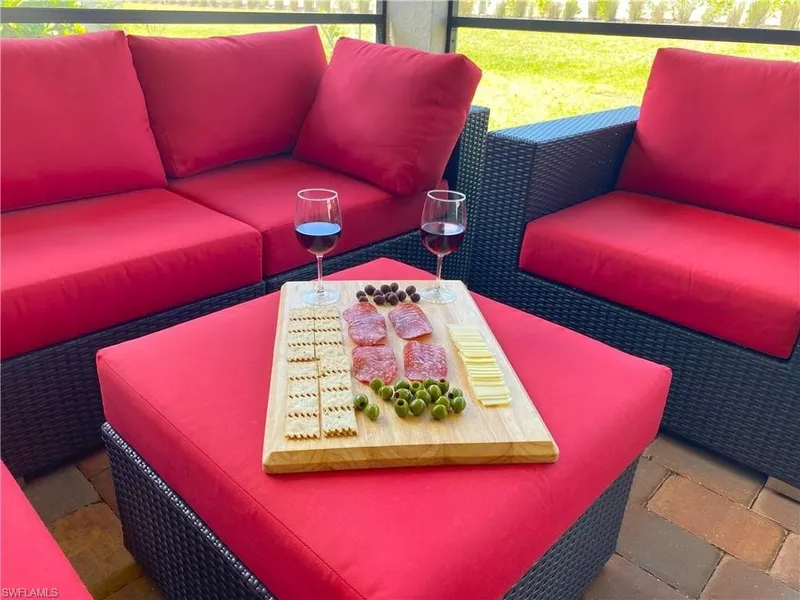 SHORT TERM (OR ANNUAL) RENTAL AVAILABLE MAY 1st 2026 @ $3,200/MONTH (RENTED FOR SEASON 2026, BUT AVAILABLE FOR $7,500/MONTH FOR DECEMBER - APRIL 2027). Welcome to your dream retreat at the Esplanade Lake Club! This stunning villa boasts 2 spacious bedrooms, an office/den with a queen pull-out sleeper, and 2 beautifully appointed bathrooms, all thoughtfully designed for elegance and comfort. Step into a bright and airy living space that effortlessly combines modern sophistication with cozy charm, making it ideal for both relaxation and entertaining. The office offers a private, versatile space perfect for working from home or accommodating guests. Relax and unwind in the expansive screened-in lanai, where you can enjoy the serene surroundings in comfort, rain or shine. Beyond the lanai, a large, open yard provides ample space for outdoor activities, family fun, or simply soaking in the Florida sunshine. Esplanade Lake Club offers an exceptional resort-style lifestyle with a wealth of luxurious amenities. Spend your days lounging by the sparkling lagoon pool or indulge in tropical cocktails and mouthwatering dishes at the Bahama Bar, where poolside relaxation meets flavorful dining in a picturesque oasis. For those who love to stay active, enjoy world-class tennis, pickleball, and bocce courts, or elevate your workout at the cutting-edge fitness center. Water enthusiasts will appreciate the private lake, perfect for kayaking, paddleboarding, or simply unwinding on the sandy beach. Stroll or jog along beautifully manicured trails, or connect with friends and neighbors through vibrant community events, casual gatherings, or game nights in the lively clubhouse. Conveniently located near Fort Myers Airport, and just minutes from premier shopping and dining destinations, this home offers the ideal blend of relaxation, recreation, and modern luxury. Whether you're looking for a seasonal escape from January to April, a peaceful off-season retreat, or a long-term rental, this charming villa is the perfect place to call home.