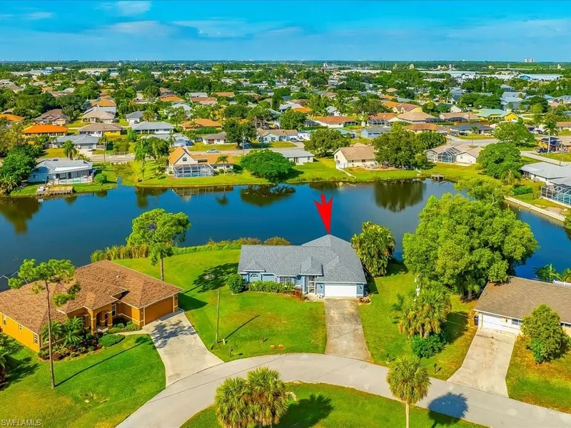 Rare opportunity to own a triple lot home with lake views and a private pool in San Carlos Park, Ft. Myers. This spacious residence features a freshly painted interior with Western exposure, offering abundant natural light throughout. The split floor plan includes a generously sized primary suite with a large bathroom and walk-in closet.