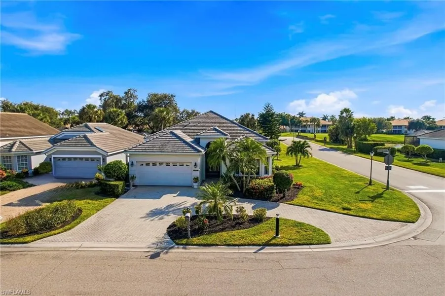 Welcome to SOUTHERN EXPOSURE in THE VINES, a beautifully maintained home located in the desirable Palmbridge Village of Estero Country Club at The Vines. Situated on a scenic 0.27-acre CORNER LOT with expansive GOLF COURSE VIEWS, this residence offers 2 bedrooms plus a den, 2 bathrooms, and 2,127 square feet of bright, open living space (4,028 total square feet), ideal for both everyday living and entertaining. The **updated kitchen** features NEWER APPLIANCES (2019) and a REVERSE OSMOSIS SYSTEM, while the main living areas flow seamlessly to the screened lanai with a SOLAR-HEATED POOL for year-round enjoyment. A CIRCULAR DRIVEWAY enhances curb appeal and provides ample parking. Major improvements have already been completed, including a NEW ROOF (2021), NEW HVAC SYSTEM (2021), POOL RESURFACED (2021), WHOLE HOUSE WATER SOFTENER (2021), and NEW POOL CAGE (2024), offering peace of mind for...