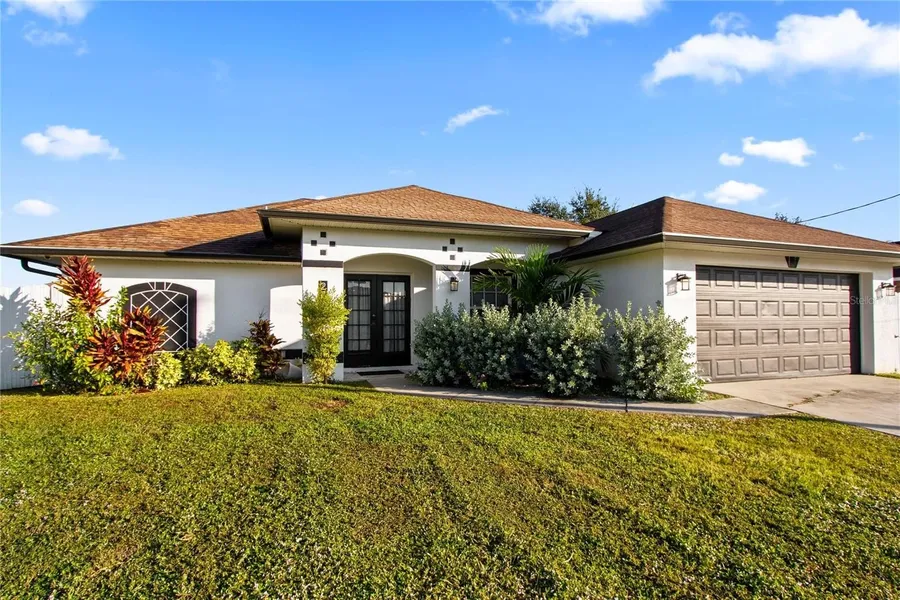 Welcome to 2710 25th St SW, a beautiful single family home on a generous 0.26-acre lot in the heart of Lehigh Acres. This 1,710 square foot, ranch-style home features 4 spacious bedrooms, 2 full bathrooms, and an added "bonus room" that can be used as an office, den, or anything you wish! This home provides a thoughtful split-bedroom layout, offering privacy and comfort for family and guests. The bright, open interior boasts tile flooring, vaulted ceilings, a formal dining area, and a well-appointed kitchen with stainless steel appliances, granite countertops, and a mini wine refrigerator—perfect for both entertaining and everyday living. Built in 2007 with durable concrete block and finished in classic stucco, the home includes a screened patio overlooking a large fenced backyard (2021) with a 24' above-ground pool (2021), ideal for relaxing, entertaining, or enjoying Florida’s sunshine...