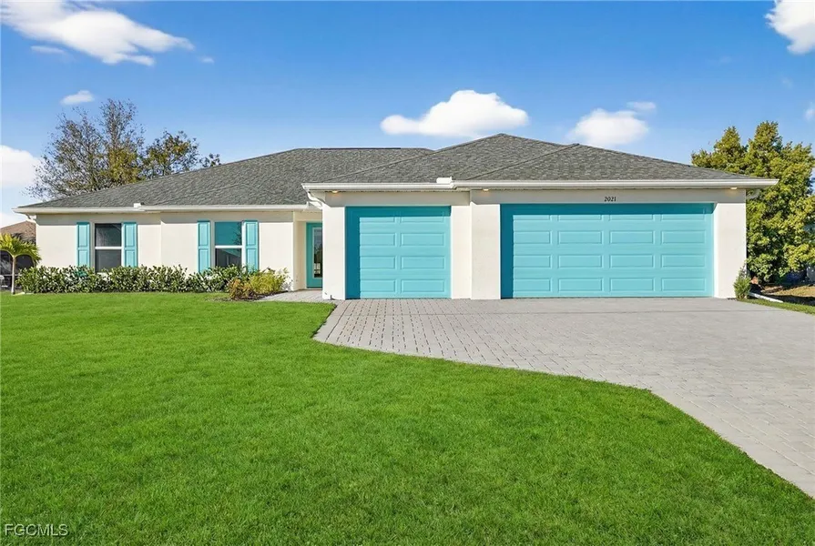 NEW CONSTRUCTION|$15,000 TOWARD CLOSING COSTS! UNBELIEVABLE VALUE! 3 CAR GARAGE! HEATED POOL!! THIS HOUSE IS HUGE! This Spacious Pool Home features 4 large bedrooms, 3 full baths, Two Primary Suites! Welcome to your dream home! Featuring two luxurious primary suites, this home offers the perfect blend of comfort and elegance. Step inside and experience the open-concept great room, highlighted by a 12-foot triple slider that seamlessly connects indoor living to the expansive 1,100 sq. ft. under-truss lanai and heated pool. The gourmet kitchen is a chef's delight, boasting soft-close, all-wood cabinetry, quartz countertops, stainless steel appliances, and an oversized walk-in pantry for all your storage needs. The first primary suite is a true retreat-spacious enough for a king-size bed and additional seating, with direct access to the lanai and pool. Unwind in the spa-inspired ensuite, featuring a freestanding soaking tub and separate shower. Perfect for out-of-town guests or related living, the second primary suite has a full bath that doubles as the pool bath and walk-in closet. Built by a trusted local builder, this home offers incredible value in Cape Coral. Plus, enjoy peace of mind with a 10-year structural warranty, NO FLOOD ZONE + IMPACT WINDOWS = LOW INSURANCE COSTS. Don't miss out on this opportunity to live the Florida lifestyle at its finest. This is The Paradise Cove Plan.