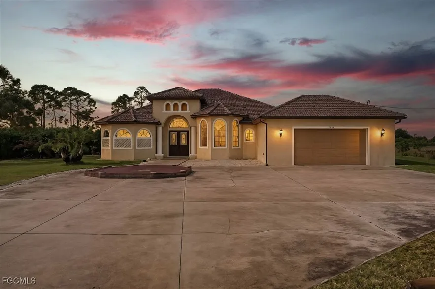 Welcome to this exceptional 2019 private home set on a rare 1.80-acre estate lot in Cape Coral. This expansive property provides a peaceful setting and outstanding space, paired with a beautifully appointed home featuring 4 bedrooms, a den, and 3 full baths. Inside, you'll find tile flooring throughout and an open, comfortable layout that makes the home feel bright and welcoming. The living area flows easily to the outdoor space, where a heated pool and screened-in lanai overlook the acreage. The rear Western exposure brings in beautiful afternoon light and sunset views, and the outdoor kitchen makes entertaining and everyday outdoor living effortless. The primary suite is spacious and comfortable, offering a double vanity, soaking tub, separate shower, and a generous closet. The split floor plan provides privacy for family and guests, and the den is ideal for an office or flex room. A d...