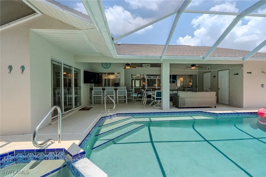 This is a VACATION RENTAL only. Owner will not consider an annual rental. Weekly rentals permitted. Welcome to Villa Nine Palms! Villa Nine Palms is a 3-bedroom, 2.5 - bathroom pool home located in the desirable, quiet neighborhood of Southwest Cape Coral. Just a short drive to restaurants, super markets, pharmacies, etc. Venture out to Cape Harbor Marina where you will find a number of delicious restaurants and live entertainment. It's all there for you to enjoy! KEY FEATURES: This home is pet friendly. Living Room: The Living room offers plenty of seating with a lovely view of the pool area. There is a glass slider with easy access to the lanai and pool area, which creates a wonderful indoor/outdoor living atmosphere. Family Room: The family room is directly off of the kitchen. It has a fireplace, flat screen tv and plenty of room for the whole family to enjoy a good movie. Kitchen/Dining Room: The open area kitchen features gorgeous granite countertops. This fully equipped kitchen has everything you would need to prepare your meals for your loved ones and friends. The large breakfast bar has additional seating available, perfect for a quick snack or brunch. The dining room has seating for up to six. Primary Bedroom/Bathroom: You will find the master suite with a King-sized bed, a flat-screen TV, adjoined to the spacious primary bathroom. The large ensuite bathroom has dual vanities, a spacious walk-in shower, and a large soaking tub-a perfect spa-like experience to give you an incredible feeling of relaxation. Guest Bedrooms/Bathrooms: One of the bedrooms has a queen size bed and doubles as an office, equipped with a desk, and printer for your convenience. The other guest bedrooms offer a Queen-sized bed and flat-screen tv. The guest bathroom, has dual sinks and a tub/shower combo. . Pool/Lanai: The outside lanai area is like stepping into your own tropical oasis. You will surely want to spend most of your days enjoying the pool and spa! There is plenty of comfortable seating on the lanai and a large flat screen tv. So what are you waiting for? Book your perfect getaway today at the stunning Villa Nine Palms! Electric Usage Allowance includes electricity up to US $50.00 per week (additional use US $0.15/KWH) Pets: This home will accommodate up to 2 pets that do not exceed a combined weight of 35 lbs.