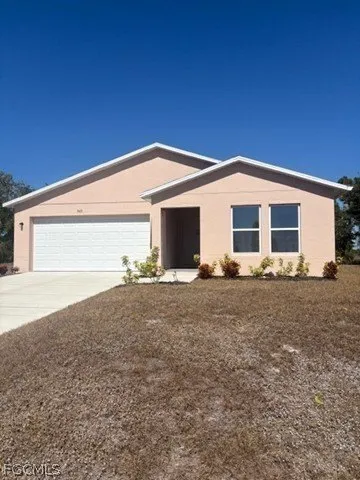 Find serenity in you new home, set against the backdrop of tranquil Cape Coral! The Prescott Plan features an airy open layout with a seamless transition between the Living Room, a well-equipped Kitchen, and a separate Dining Area, ideal for entertaining. The kitchen stands out with its beautiful cabinetry, granite countertops, and stainless steel appliances, including a range with a microwave hood and dishwasher. The serene primary suite includes a private bath with dual vanity sinks and a generous walk-in closet. Additional highlights include a convenient two-car garage, and energy-efficient Low-E insulated dual-pane vinyl windows. A one-year limited home warranty. No HOA! Seller Offering Concessions! Move-in Ready!