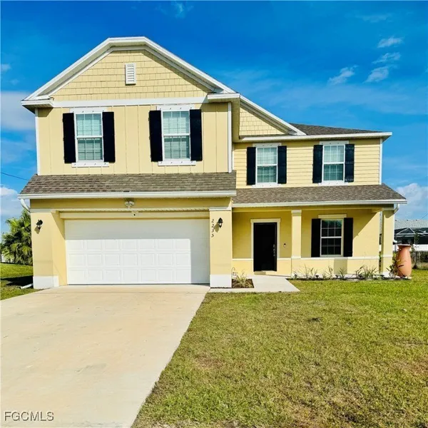 The price has just been reduced!!! --- Modern 2023 Two-Story Home in a Prime Location Beautifully maintained 5 bedrooms and 3 full bathrooms with an oversized, functional layout. The entire first floor features wood-look plank tile, creating a durable and cohesive living space. Open-concept kitchen with stainless steel appliances, center island, and views of the spacious family room ideal for entertainment. Upstairs features carpeted bedrooms and an open loft overlooking the first floor, perfect for a second living area or home office. The primary suite bathroom offers dual sinks, soaking tub, and separate shower. Master bedroom also includes a large walk-in closet. All upstairs bathrooms and the laundry room feature wood-look plank tile flooring. Includes a first-floor bedroom and a full bathroom, ideal for guests or multigenerational living. Located near the future Cape Coral Grove Tow...