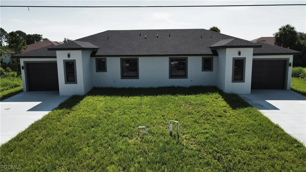 Brand new 2025 construction duplex located in the desirable Westminster area of Lehigh Acres, FL. This turnkey income-producing property features two spacious units, each with 3 bedrooms, 2 full bathrooms, a private 1-car garage, separate driveways, and modern finishes throughout. Built with quality and durability in mind, both units include luxury tile flooring, granite countertops, soft-close cabinetry, stainless steel appliances, impact-resistant windows and doors, and full laundry hookups. Open-concept layouts provide bright and functional living spaces. Each unit has its own electric and water meter, making this a low-maintenance, high-efficiency investment opportunity. Concrete block construction and architectural shingle roof ensure long-term durability. Located in a growing residential area with no HOA fees and easy access to I-75, SR 82, shopping, restaurants, schools, and Southwest Florida International Airport. Just a short drive to Fort Myers and nearby beaches. Ideal for investors seeking strong rental income or owner-occupants looking to live in one unit and rent out the other. New build warranties included. Don't miss this opportunity to own a brand new duplex in one of Lehigh Acres' most up-and-coming neighborhoods. Property ID - 33-44-26-L1-08010.0050 -