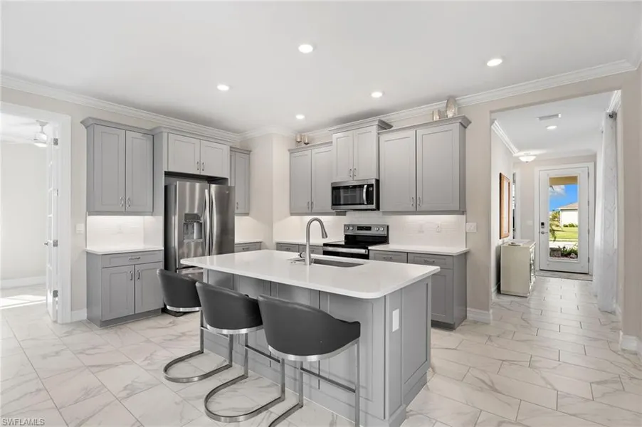 Welcome to this beautifully appointed 3 bedroom, 2 bath home built in 2023 and perfectly positioned in the highly sought after Seasons at Bonita. Designed with modern living in mind, this residence features stylish contemporary finishes throughout, including an open concept floor plan, sleek cabinetry, and upgraded fixtures that create a light, airy feel. Situated on an oversized lot, the home offers added privacy and space rarely found in the community. Enjoy tranquil lake views from the main living areas and unwind on the extended lanai, ideal for outdoor dining, entertaining, or simply relaxing while taking in the serene water backdrop. With newer construction, modern design, and a premium lot, this home combines comfort, style, and Florida living at its best, just minutes from shopping, dining, beaches, and all that Bonita Springs has to offer! Seasons is not in a flood zone. Flood i...
