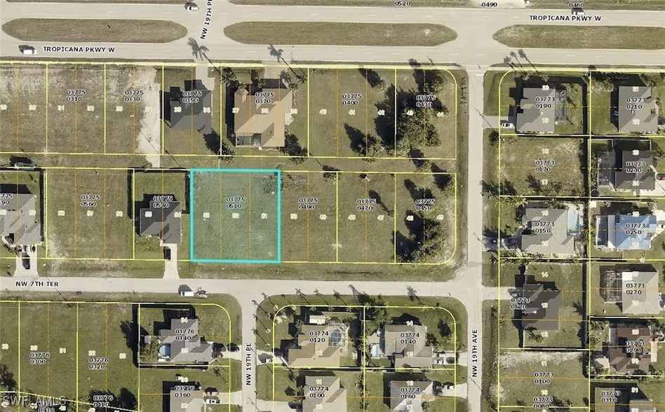 Research Parcel InformationFrom Veterans (N) on Chiquita (L) on Tropicana Pkwy W (L) NW 19th Ave (R) on NW 7th Ter. Lot will be on the right hand side of the road.