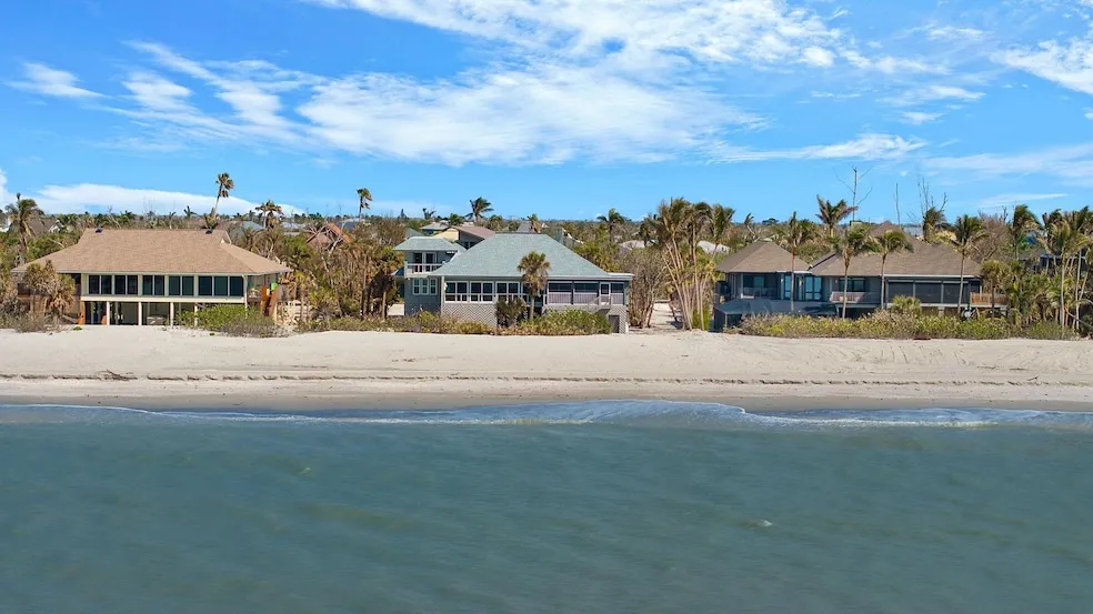 Located on the shores of Sanibel Island, this one-of-a-kind raised 4-bedroom, 4 -bath Gulf Pines home offers unrivaled views and privacy with 110 feet of direct Gulf frontage. Upon entering, you're greeted by a stunning two-story glass atrium garden that brings the outdoors in, filling the home with natural light and hues of the sea. The spacious primary suite features a sundeck overlooking the Gulf, his and her bathrooms with separate tub and shower and custom built-ins. Two charming guest rooms are located in the main house, including one with a private porch and breathtaking ocean views. A separate guest suite, connected by a covered walkway, can also serve as an office or den. The chef s kitchen is a culinary dream with granite counters, Miele dishwashers, Wolf ovens, Sub Zero fridge, and more. With vaulted ceilings and an open concept design, the home flows effortlessly to expansive...
