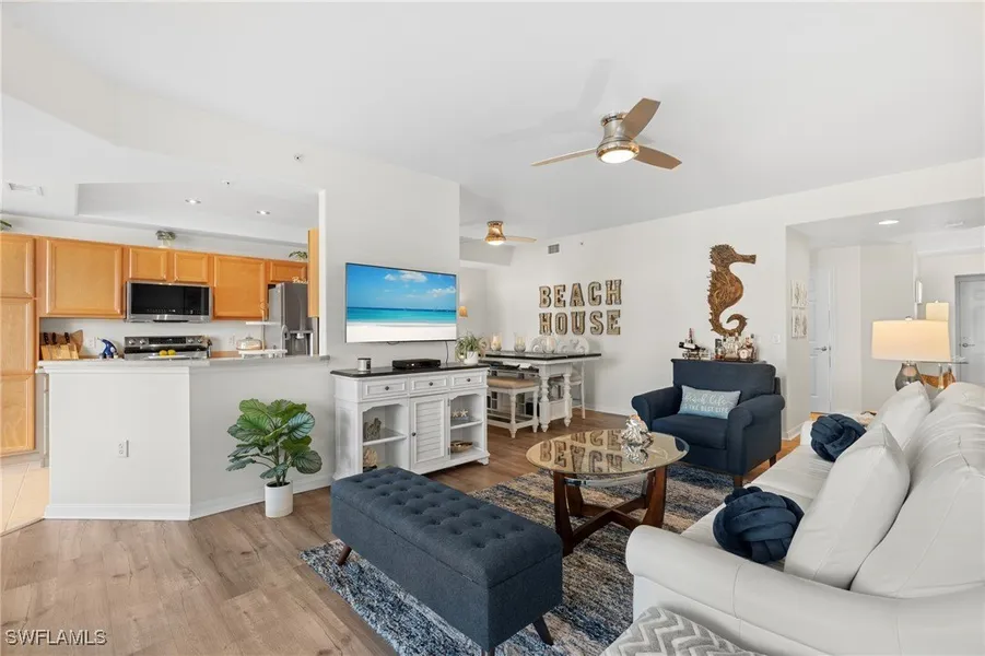 Nestled lakeside in the prestigious gated community of Majestic Palms, this beautifully renovated first floor carriage home is coastal living at its finest. Centrally located between Fort Myers Beach and Sanibel Island, you're just minutes from world-class beaches, dining and shopping. This move-in ready home features 3 bedrooms, 2 baths, and an attached 1 car garage. Recent upgrades include a new roof, stainless appliances, and LVP flooring throughout. Entertaining is a dream with an open floor plan, spacious kitchen, dual dining areas, and double-door screened-in lanai with stunning lake views. The generous primary suite features expansive windows, walk-in closet, and a meticulously tiled spa-style shower. Modern conveniences include weather monitoring roll-down shutters. Enjoy sunny days and carefree living in the resort-like community featuring a geothermal heated and cooled pool, hot tub, and community BBQ area. Flexible community policy offers excellent seasonal rental opportunities. Make this SW Florida gem your new oasis today.