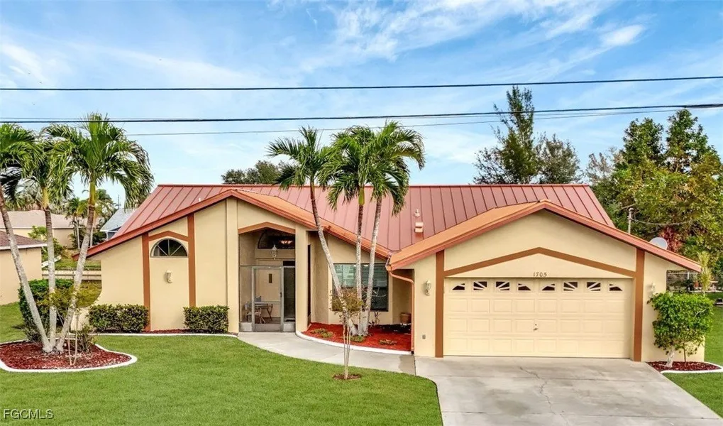 SPLASH INTO THE CAPE LIFE! Move-in ready 3BR/2.5BA canal-front home on a freshwater canal with private dock. Kayak, fish or sip your coffee as the sun rises over the water. Inside, enjoy cathedral ceilings, two sets of French doors and a generous family room that opens to the screened lanai. With room for a pool, the screened lanai offers a 1/2 bath, outside shower and large storage room for all your pool toys and equipment. Other perks include interior laundry, tile and laminate flooring and a split-bedroom layout. The kitchen has SS appliances and features real wood cabinets and double wall ovens. The primary bath offers a bidet and his and her walk-in closets. This primary bath is ADA compliant with grab assist bars, zero clearance shower entry for wheelchairs and walkers, counter and sink are wheelchair height friendly. French doors lead from the primary bedroom to a beautiful, large screened lanai, where you can enjoy the evening breeze or sip your morning coffee. All assessments are paid. Upgrades include newer METAL roof, newer AC, automatic sprinklers and GENERLINK hookup. Recently painted inside and out, located in the heart of SE Cape Coral near shopping, dining and quick commuter routes-yet, this home is tucked into a quiet street, on water and in an X FLOOD ZONE. Ready to make this waterfront charmer your everyday retreat?? Call to schedule your showing today!.