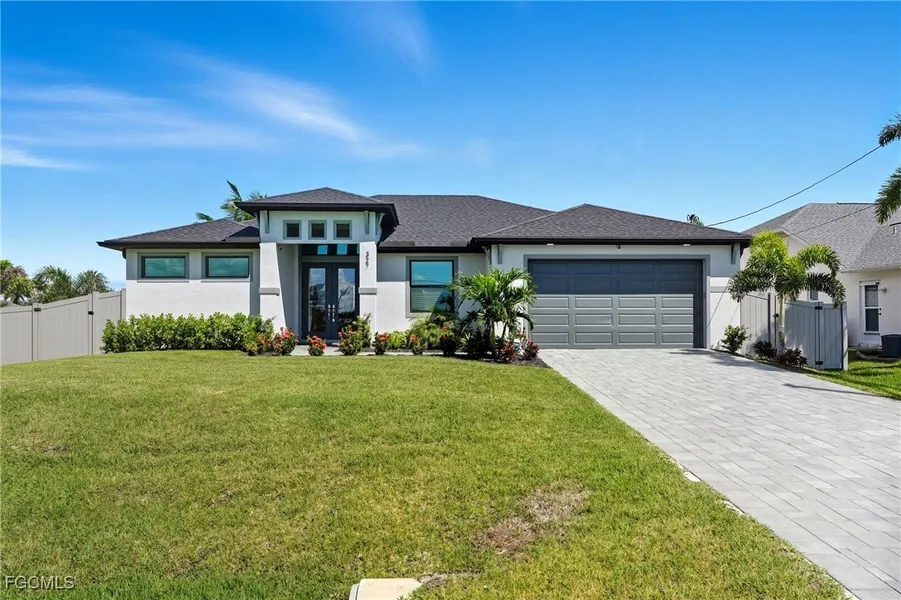 Skip the wait, stress, and hidden costs of building new-this exquisite pool home, completed just 10 months ago, is move-in ready and already includes features most new construction lacks: a privacy fence, whole-house reverse osmosis system, custom closet shelving, and a state-of-the-art security system. Set high and dry (not in a flood zone) on the shores of an intersecting freshwater canal, the property offers sweeping water views, a front-row seat to Florida's abundant wildlife, and outstanding fishing right from your own backyard. Lush tropical landscaping, impeccable curb appeal, and a pavered driveway welcome you to this peaceful and serene retreat. Inside, modern tile floors flow seamlessly throughout the split, open-concept plan. The foyer opens to a light-filled den/office through elegant double doors, ideal for working from home or a flexible guest space. The luxurious master su...