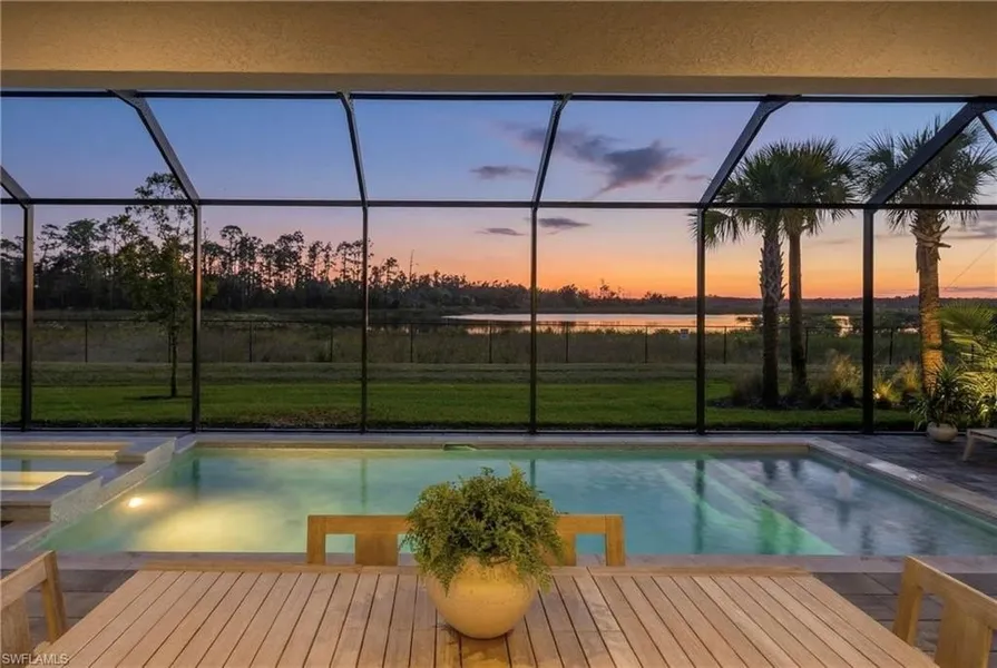 ALL THE ESTATE LOTS ARE SOLD OUT - This is it! Welcome to a truly one-of-a-kind estate home in Verdana Village, on the BEST LOT where timeless craftsmanship, modern luxury, and an irreplaceable setting come together in perfect harmony. This expansive 6-bedroom + loft, 3 full-bath residence with 3 car garage is set on premium oversized homesite offering serene lake and preserve views, delivering a level of privacy and natural beauty that is becoming nearly impossible to find. Inside, the home is richly appointed with crown molding, designer lighting, and custom woodwork, with quality craftsmanship rarely seen by today's standards. A beautiful custom built fireplace that anchors the main living area. The chef's kitchen is equipped with a built-in wall oven, Natural gas cooktop, premium cabinetry w/ pot and pan drawers, quartz countertops throughout - all new custom designer finishes. A spacious open floor-plan complimented by soaring 9.5 ft ceilings and 8-foot doors on both levels, enhancing the home's warm yet refined atmosphere. The true showstopper lies outdoors. Step onto your massive 50-ft wide covered patio and take in the sights and sounds of nature-morning coffee while watching flocks of bird's glide over the pond and deer grazing in the preserve, then unwind in the evenings with jaw-dropping sunset views by your custom-built pool and spa. It's a sanctuary, designed for entertaining, making memories, and everyday enjoyment. The outdoor space features a custom full outdoor kitchen positioned opposite a stunning entertainment wall with an electric fireplace, creating a resort-style setting right in your backyard. All hurricane impact windows and doors, Flood Zone-X (no flood insurance required) 40-ft paver driveway, 70x150 ft deep OVERSIZED pie shaped lot that opens to 88-ft in the back. Giving you plenty of privacy and gorgeous unobstructed views from every window of the home. This model is no longer offered by the builder, and homesites of this size are becoming increasingly rare as lots get smaller and homes get narrower. Simply put, this is a home that cannot be built again. This is more than just a home; this is a lifestyle upgrade. A property like this doesn't just offer space and upgrades-it's a statement of perspective, exclusivity, and permanence. Opportunities like this rarely present themselves twice. This is your chance-schedule your showing today!