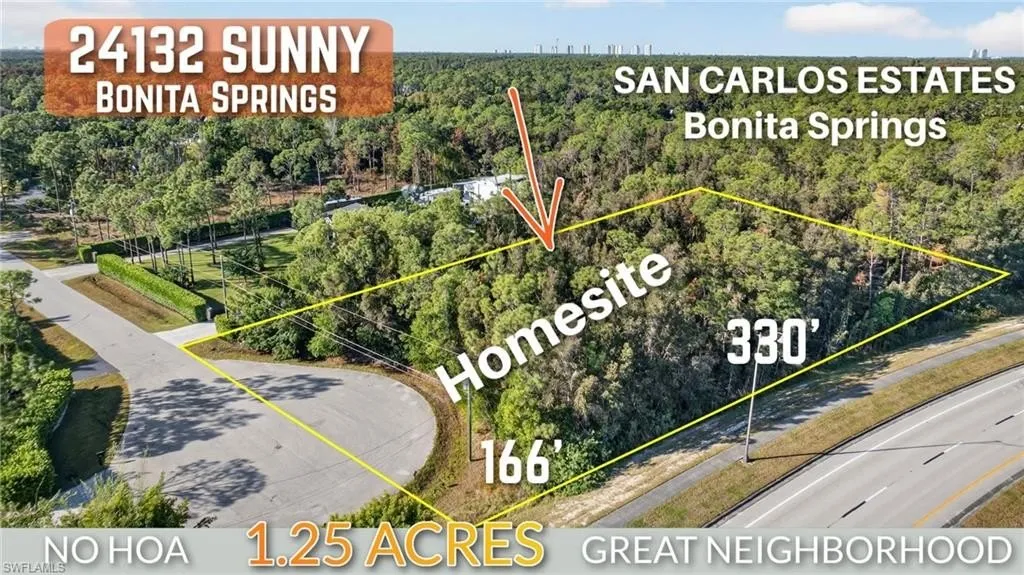 1.25 ACRES!! GREAT PRICED LOT ON ONE OF THE BEST STREETS IN SCE READY FOR YOUR DREAM HOME!! This lot is surrounded by HIGH END CUSTOM NEW HOMES!! Opportunity to buy land for your dream build in one of the most desirable neighborhoods in SW Florida for under $200K!! Nowhere else can you get Acre + properties, Privacy, No HOA, Outbuildings Allowed, Sports Courts Allowed, Playfields, Personal Parks, Outdoor Gyms, Space for your toys, the options here are limitless and NO BOARD OR FUN POLICE TO TELL YOU WHAT TO DO!! Homes in the Caliber of 2-4 MILLION are being built throughout the neighborhood!! This lot is 100% wetlands and priced accordingly!! Mitigate the wetlands and surround yourself in lush privacy!! THE ADJOINING LOT TO THE REAR AT 24131 MELAINE IS ALSO FOR SALE ALLOWING A UNIQUE 2.45 ACRE OPPORTUNITY!! Centrally located close to 41; the beaches, shopping, dining, Coconut Point, Downtown Bonita and more!! Privately owned streets and gated on one end of the community to prevent through traffic keeps this "one of a kind" neighborhood quiet, safe and peaceful for wooded bike rides, golf cart rides, jogging, long walks and more! Call today!!