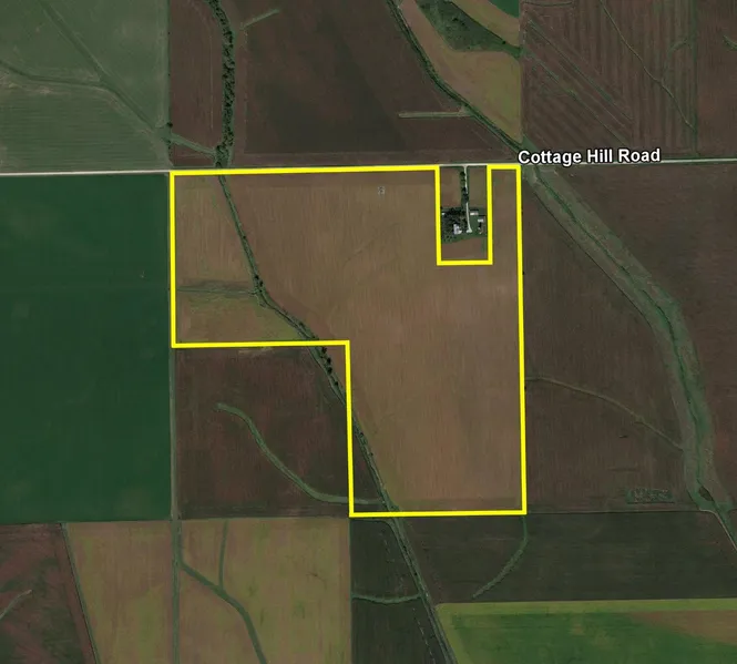 Legal Description: A brief legal description indicates The Cottage Hill Road Farm is located in Part of the Northwest Quarter of Section 34, Township 37 North Range 2 East (Wyoming Township), Lee County, Illinois.