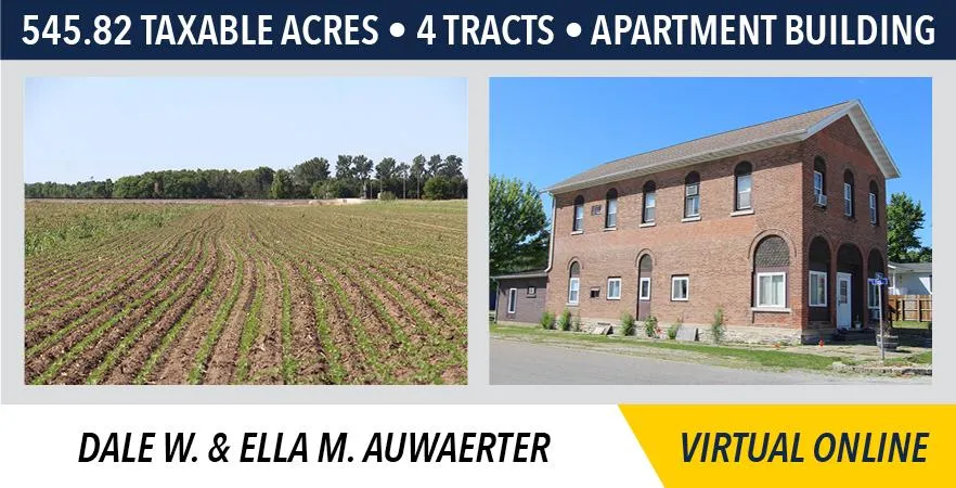 Mark your calendars now for this late summer Lee County, Iowa land auction. The Auwaeter Farms represent very productive nearly 100% tillable tracts of land as well as a combination of tillable and hunting/recreational tracts. Also included on this auction is an income producing 4-unit apartment building. Don't miss this chance to start in or add several acres to a new or existing farming operation, plus the opportunity to purchase an income producing property in the quaint small town of Montrose, Iowa.
