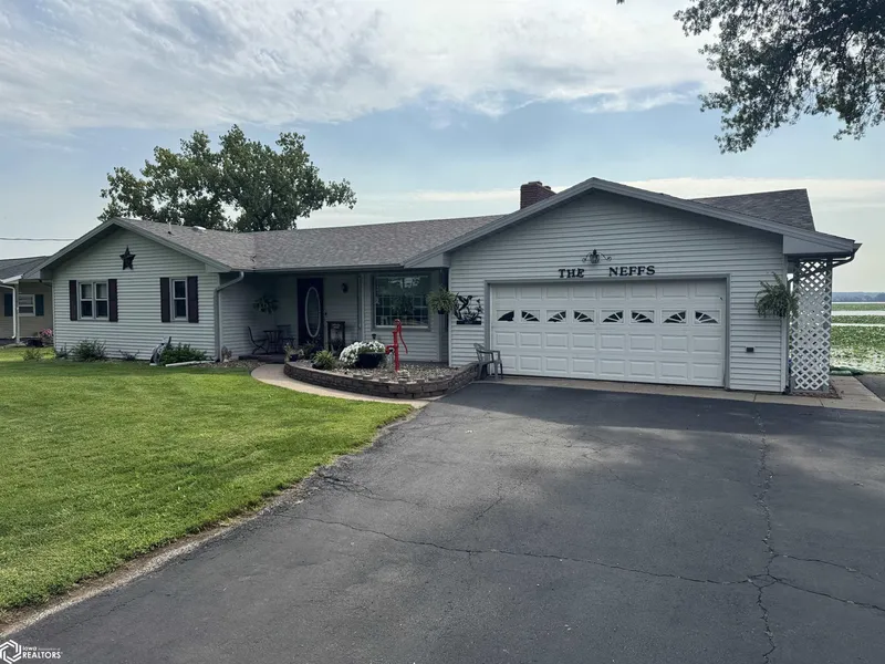 Breathtaking Mississippi River views await you at this beautiful ranch-style home in the desirable Schlotters Subdivision, overlooking the Nauvoo Mormon Temple with an incredible 15-mile panoramic view. Boasting 100 feet of shoreline with an observatory/fishing deck and fire pit, this property offers the perfect setting for relaxation and entertaining. Gorgeous river views can be enjoyed from both the main floorwhich features a spacious living room with cozy gas fireplace, eat-in kitchen, guest bedroom, full bath, and a primary suite with ensuite bath and 3-seasons porchand the full walkout basement, which includes a family room with wood-burning fireplace, third bedroom, laundry area, and an additional bath. Outdoor living is enhanced by a huge deck, covered concrete patio, landscaped grounds, an attached 2-car garage, and high-speed internet availability, making this a rare blend of comfort, charm, and unmatched views.