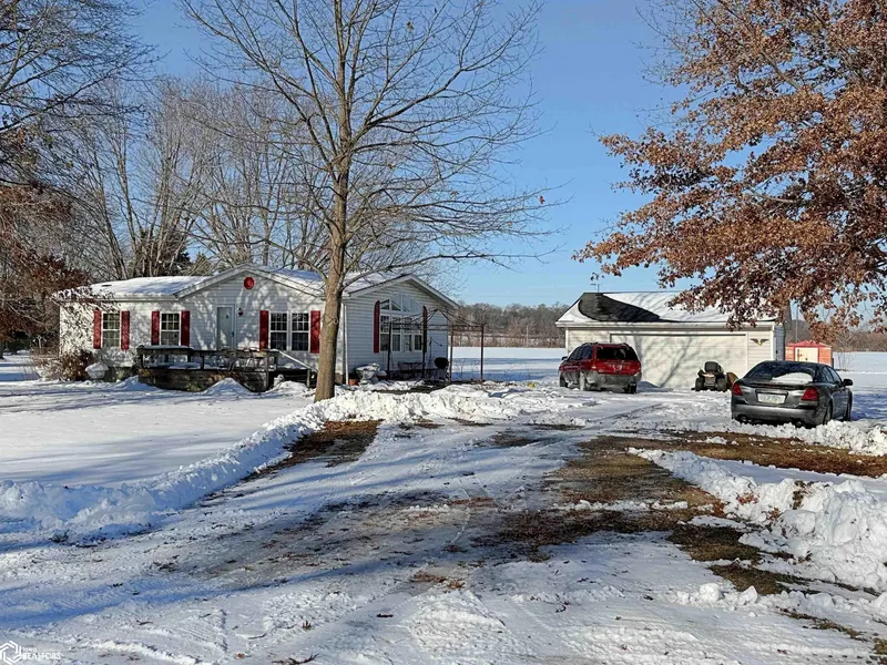 Selling at Absolute, Online Only Auction, regardless of price, this rural residential manufactured home is situated on a 0.96-acre lot in a small subdivision conveniently located near Fort Madison and Montrose, Iowa. The property offers 1,120 square feet of living space with 2 bedrooms, 2 full baths, main floor laundry, kitchen, and combined living and dining room areas. Exterior features include a wooden front porch, rear deck, wood patio, a 2-car garage, and two storage sheds. The lot includes mature shade trees, gardening areas, and room for future expansion. Located in the Central Lee School District, this property presents a straightforward opportunity for buyers seeking small-acreage rural living. List price is assessed value and has no bearing on final sale price!