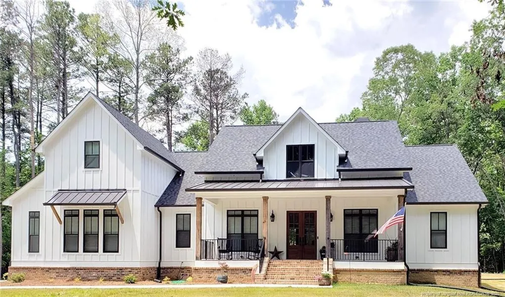 The exterior of the cozy farmhouse is well appointed with architectural shingle roof for the entire home with two metal accent roofs on the front elevation. The covered front and back porch have exposed wood columns and a durable vinyl ceiling. The home is wrapped in a board and batten style, Everlast composite board siding with extended warranty and durability. The interior features 4 bedrooms with plenty of space for everyone! The open concept kitchen features a gorgeous breakfast area as well as a walk in pantry. Pay special attention to the last 4 photos which include a descriptive trim sheet specifying every feature included in this build! Items not included in the trim sheet will not be included.