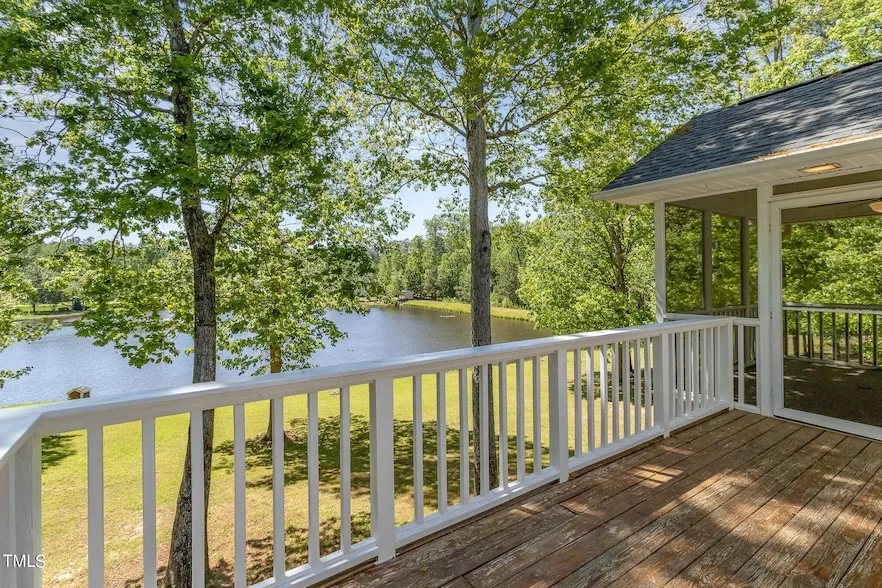 On the water, this beautiful updated custom built lake front home is a rare opportunity. Located in West Landing neighborhood this 3 bedroom, 2.5 bath brick Ranch is perched nicely in a private cul-de-sac on a large lot. Sunsets on the lake can be seen from large windows in the family room, kitchen, screen porch, master bedroom, back deck, walk-out finished basement and 2 other bedrooms. Open vaulted kitchen and family room. The 2- car garage is oversized with a finished workshop/ office. Other incredible features include additional office/study in the walk-out basement, Ecobee smart thermostat, new KitchenAid downdraft oven, parking space for an RV or a boat, both family rooms have a brick fireplace, high end whole house humidifier. The home is also located on the deep end of the lake and has a sprinkler system. Freshly painted and move in ready. The HOA includes a beautiful neighborhood pool. 10 minutes to downtown Sanford and 45 minutes to downtown Raleigh. New 3D Tour available upon request.