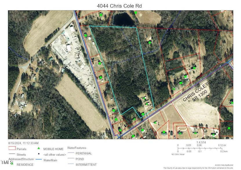 Research Parcel InformationFrom the Tramway area take Hwy US 1/ US 501 heading South. Right onto Chris Cole Rd. Property will be approximately 4 miles on the Right. **GPS 4044 Chris Cole Rd, Sanford NC