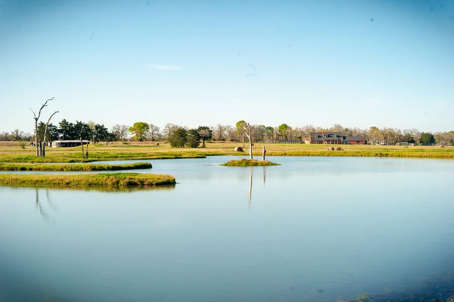 The Stellar Ranch is a located between La Grange and Giddings with easy access to HWY 77 and a short drive to HWY 290 or 71. This 1.5 story home has been well maintained and features a combination of brick and wood siding and three-year-old composition roof. There are two different seating areas around the home one of which provides an excellent view of the property and the water features located on it. The home features an attached finished oversized garage with a work bench space and a separate room great for hunting gear or a gun room. The mud room is oversized and doubles as a game room. Downstairs the floor plan is open with the kitchen, dining, living area all open to one another. The kitchen was recently remodeled, and the living area features a brick fireplace. The master is also located downstairs and has lots of closet space, toilet room, and a tub/shower combo. Upstairs are three guest rooms and a full bathroom. Outside there is a wood frame barn on a slab that also has an office located in it. The property has been improved with all-weather roadways and improved grasses for hay production. Three good size ponds highlight the property and provide ample recreation. A water well capable of 70 GPM rounds out the ranch.