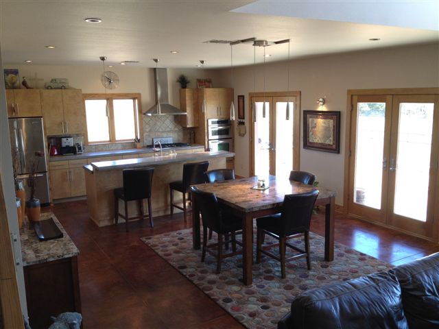 This property is something special. No matter your preferred style, you will be impressed with this beautiful home. Meticulous craftsmanship throughout - stained wooden ceilings under exterior overhanges, stunningly sleek staircase, elegant master bath with soaking tub and whower, stained concrete floors, cozy guest quarters complete with kitchenette and laundry, extensive native landscaping with complementing concrete walls and borders, and the list goes on. The home shows attention to detail in every fixture and finish. The turn of every corner, inside and out, offers something to be appreciated. Only minutes from town but a quiet that only comes from country living - IT'S ALL HERE.