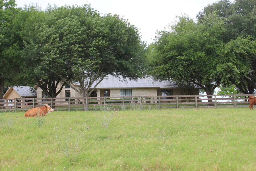 This beautifully manicured 118+/- acre ranch has a gorgeous 3/2 white rock home with attached two car garage and is perched on an oak tree covered hill top that features breathtaking views both morning and evening. The rolling hills on this land have been improved with lush coastal, two stock tanks, a 3600 sqft barn with pipe pens, a cow shed and storage shed. The home features a kitchen/dining area with a center island and walk in pantry. The dining area opens up into a living room that has vaulted ceilings and a beautiful white rock, wood burning fireplace. The large master bedroom also has vaulted ceilings, an attached sitting/office area and a master bath with a spa tub, separate glass walled shower and a huge walk in closet. The kitchen, guest bedroom and master bedroom all have French doors that open onto a back porch that's made for sitting and watching the sun set. The property ...