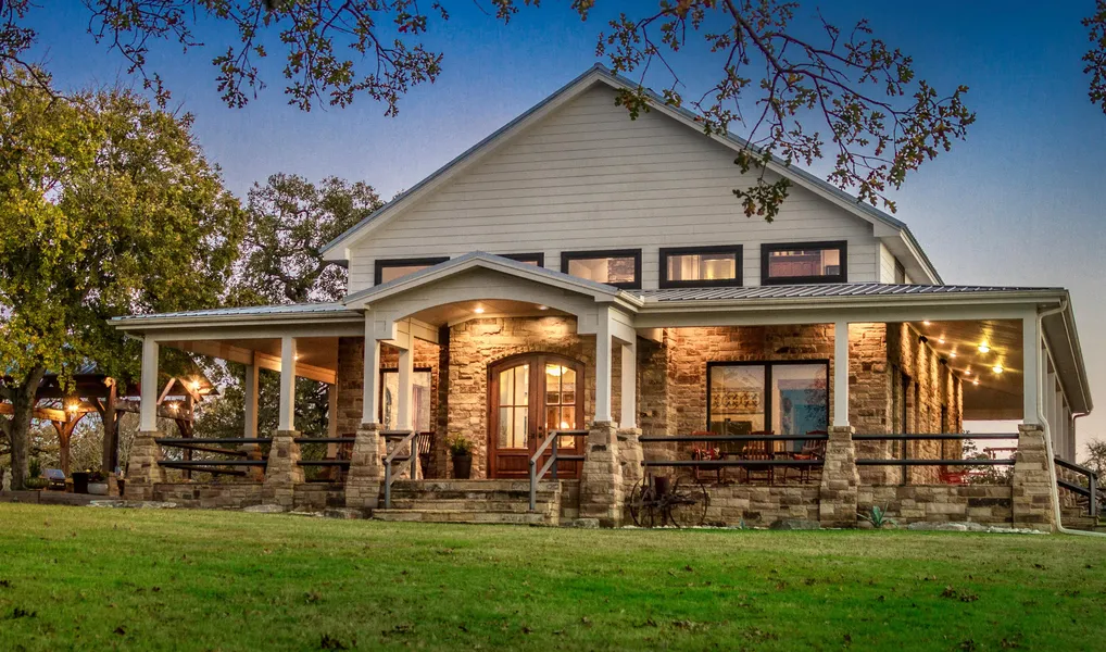 Broad wrap around porches outfitted with groups of wooden rockers invite all to sit, relax and whet your appetite while dinner cooks in the custom outdoor kitchen or in the chef's kitchen inside. The tree shaded picnic tables inspire lingering late night conversations by the fire under open, star filled skies.