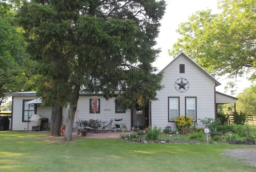 The primary residence is a 2/2 - 1,500 sqft. old family home estimated to be at least 100 years old that was updated at some point (dropped ceilings, laminate flooring, new front porch (1955) and double-pane windows...) with original wooden flooring under laminate and original wood-burning fireplace behind electric fireplace. The home retains the original exterior look and feel and has a ton of potential for restoration. The covered front porch is shaded by an ENORMOUS old tree and both the front and back (HUGE pecan trees) yards are covered in thick carpet grass and have a nostalgic view to the north of an old, two-story home in the distance, built at about the same time. It's not hard to imagine that bushels of black-eyed peas were shelled under the shade of that big tree, that hot summer nights were passed in rockers on the front porch and if you listen hard, you can almost hear grandma in the kitchen. The second home on the property is a pecan-tree shaded 1/1 brick home with a kitchenette that's (infrequently) used as a guest house. It does have other unfinished rooms, but overall, is in need of a considerable amount of repair. The third residence is a 1,132 sqft -3/1 brick home with detached garage and storage shed(s) that is used as a rental property. The property is perimeter fenced/cross fenced for cattle and has a stock pond and two shallow wells.