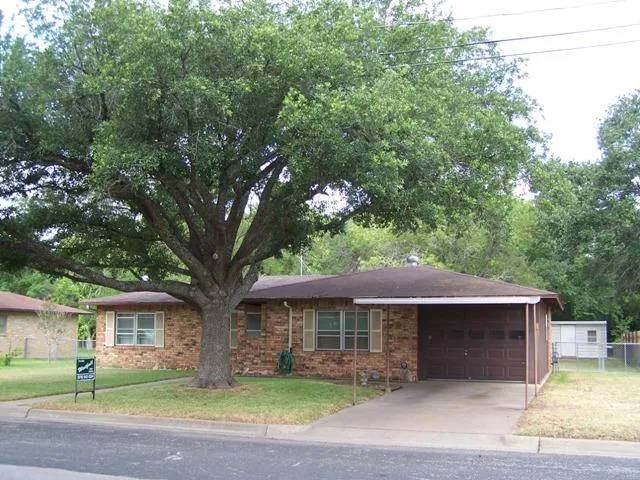 Three bedroom one bath brick home located on a spacious and treed lot in the North Meadows Subdivision in Northwest Giddings, Texas. This home includes central heating and cooling, double pane windows, a one car garage, a one car carport and a covered patio. Other features include a fenced backyard and a storage building.